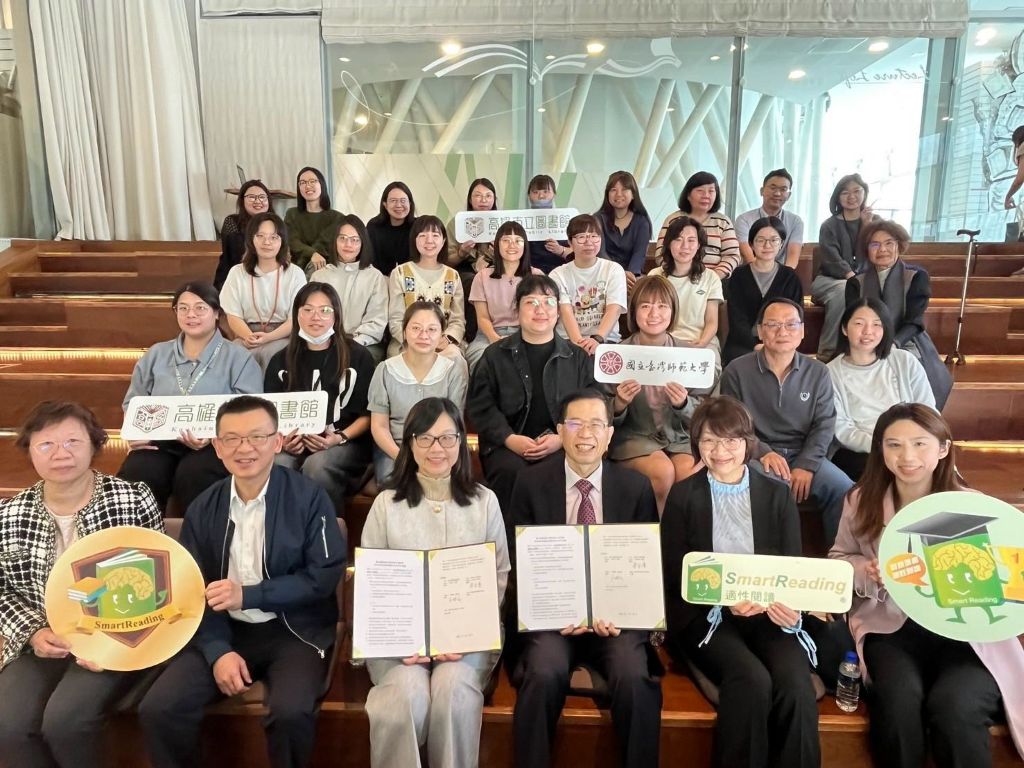 高雄市立圖書館與國立臺灣師範大學今(26)日簽署「適性閱讀系統合作備忘錄」,儀式由 高市圖李金鴦館長 與 臺師大宋曜廷副校長 共同主持,攜手推動「SmartReading適性閱讀」計畫,為市民提供 #個人化的閱讀體驗, 提升閱讀效率與樂趣,建構 AI智慧閱讀學習環境。